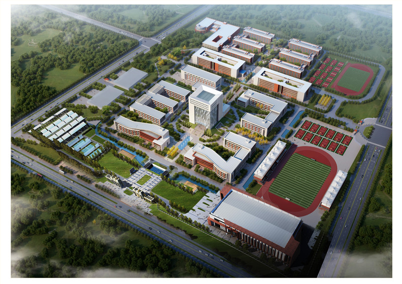 面积很大:总占地540亩,建筑面积25万平方米,实训区面积5万平方米。图文信息大楼是学校的地标建筑,以此为中心,教学区、实训区、生活区、运动区、休闲区、停车区分列四周,呈合抱式环绕。