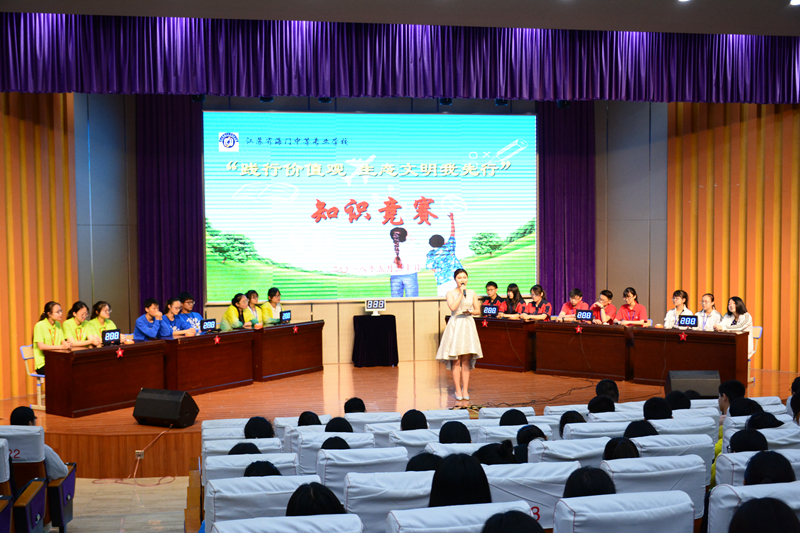 为进一步加强学生社会主义核心价值观教育,继承并弘扬中华传统文化,激励学生努力成为具有正确世界观、人生观和价值观的合格中职学生,学生工作部于5月30日下午在文苑楼二楼报告厅举行“践行价值观 生态文明我先行”知识竞赛,六大系部组建了最强队伍参加本次竞赛。 本次知识竞赛内容围绕社会主核心价值观、八礼四仪、创建文明校园“六个好”等文明城市创建应知应会知识,竞赛题型包括个人必答题、小组必答题、抢答题、风险题、加赛题。比赛过程中,第一环节必答题部分主要考察基础知识的把握程度,各参赛队伍都显示了扎实的功底,比分交替上升;第二环节抢答题部分历来是最惊心动魄的环节,各参加队伍不仅要在极短的时间内分析出正确的答案,而且还需在拼抢中抢到回答的机会,更重要的是不能犯规,这是实力与技术比拼,是脑力与手速的完美结合,抢答环节中选手们的精彩表现赢得了观众们的阵阵掌声,场上的比分也迅速地拉开;最后的风险题环节把本次知识竞赛拉向了高潮,各参赛队伍根据自己目前的分数及排名,在30分、40分、50分的题目中科学选择实现完美超越,在这机遇与挑战并存的题目中各参赛队充分发挥了团体协作的能力,随着阵阵欢呼声和一片惋惜声结束了四个环节的较量。针对2个参赛队同分的现象,根据比赛规则,两队通过加赛题进行角逐。最终财贸系力克群雄拔得头筹。 本次知识竞赛是一场智慧的交锋,是一次学习成果的检验,虽然短暂的知识竞赛活动结束了,但我们学习社会主义核心价值观和文明礼仪的脚步却没有停止,全校师生将以本次竞赛为契机,在以后的学习和生活中,时刻保持着一颗积极向上的心,勤恳踏实,时刻践行社会主义核心价值观,努力创建文明和谐校园。(文/高振辉 图/陆晓曦)