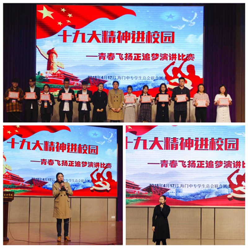 中国梦点燃青春梦,青春梦助力中国梦。每一个青年都是梦想家,都是践行者。由校学生总会联合团委以“十九大精神进校园——青春飞扬正追梦”为主题的演讲比赛,于4月17日下午3:20在文苑楼二楼报告厅成功举行。来自于学生工作部副主任李建英、团委副书记江金丹、学生会主席陈倩雯、校广播台台长王磊、团委秘书长王洋、建工系分会主席唐淑琪、信息系分会副主席张丽莉担任评委。本次演讲比赛由总会茅瑾月、沈杰担任主持人。 比赛中,各位选手准备充分,演讲内容紧扣主题,真切表达了同学们自觉学习和践行十九大精神的信念和决心,选手们风趣的语言、感人的故事、崇高的精神,感染着在场的每一位观众,他们自信、儒雅、落落大方,尽显了我校学子的风采和实力,他们用激昂的文字,饱满的热情飞扬的神采向我们诠释了新时代的年轻人精神。 17ez01沈佳敏同学“挥毫泼墨叙青春,笔墨丹青记追梦”,向我们展现了青春的活力与激情;17ez06朱钇桦同学“青春飞扬正追梦”,以张继科的故事为例,将自己对乒乓球的热爱,对教练的感恩融入演讲之中,青春飞扬,追逐梦想,让人动容;16ez07黄家愉同学自信满满,在演讲中,结合自身的实际生活,在反思中学会成长,感染了在场的每一个人…… 赛后,学生工作部副主任李建英就比赛情况进行了精彩的点评,分别指出了选手们比赛中的优点与不足,并结合自身实际,阐述了在社会主义新时期同学们学习十九大精神的重要意义,同学们都表示受益匪浅。 比赛共设一等奖一名、二等奖四名、三等奖五名经过了一个半小时的激烈角逐,17ez01沈佳敏同学以其精彩的表现赢得评委们的一致认可,最终脱颖而出获得第一名。 本次演讲比赛的成功举办,给学生们提供了一个锻炼自我、展示风采的平台,也增进了同学们对党的了解和认识,加强了同学们的社会责任感和历史使命感,坚定了永远跟党走的信念。(文:李建英 图:江金丹)