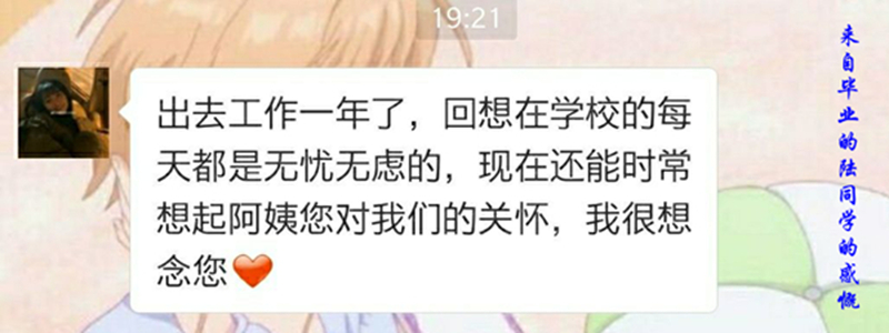 在海门中专,有这样一位平凡的人物,她不是亲人却更甚于亲人,她不是老师却更甚于老师。 她是清晨守候在宿舍大厅门口的笑脸,是时时萦绕在耳边的唠叨,是深夜宿舍里亮起的手电光,是每天穿梭在楼道里的身影,她就是我们的宿管员——张菊芳。 我们最爱称她张阿姨,张阿姨虽然看起来严肃,但却比谁都关心我们的点点滴滴,在离开父母的日子里,张阿姨给了我们无微不至的关怀,使我们感受到了家的温暖。 我们的宿舍楼大厅里有一块宣传栏,上面写着张阿姨的贴心提醒:一、请同学们注意天气的变化;二、请大家将宿舍门窗打开通风、预防手足口病;三、请同学们注意宿舍卫生、用电安全;四、同学们如有遗失的钥匙,衣服、被子、钱物、银行卡等物品,可以来值班室询问。 张阿姨,我们的“秘密树洞” 一张桌子,一把椅子,还有那桌子整齐摆放的几本值班记录本,这就是我们张阿姨的值班室了,平时张阿姨就坐在这里看着同学们进进出出,眼神中有着一股说不出的温柔。有时候张阿姨也有着“秘密树洞”的身份,大家都愿意和阿姨分享自己的开心和不开心的事情,所以阿姨的值班室里常常会传出欢声笑语。她的“闺女们”有什么不开心的事常和她说,她总耐心地开导我们,给我们说说为人处世的道理,而这些道理常常就把我们的阴霾全部驱散。 张阿姨,我们的“宿舍妈妈” 前不久,有一个女孩因为身体不适,半夜发烧,同学们一下慌了神,不知道该怎么办,连忙到值班室里去喊张阿姨,张阿姨闻讯后赶紧跟我们到宿舍把她送去医务室,等到从医务室出来时,张阿姨也早就第一时间联系好班主任、家长。当女孩被父母接走的时,张阿姨还特意给了她披上了衣服,怕她深夜在路上着凉。 在我们和张阿姨一起查房点名时,常常可以听到张阿姨提醒同学们盖好被子,小心感冒的声音,还时常看到她默默为睡着的同学盖被子的身影。记得有一次,5208宿舍的走道里放着一个热水瓶,为了防止半夜起身的同学们碰到发生意外,她便轻轻将热水瓶放到洗漱台下面,并提醒同学们注意安全后才离开。张阿姨就像我们的亲人,不求回报的关心着我们,在尽职尽责的做好自己的本职工作同时,给予我们更多的是母亲般的关怀。 张阿姨不但关心着我们身体的健康成长,还牵挂着我们成绩的学习进步。上学期,女生宿管部戴佳佳同学参加技能大赛,阿姨十分关心,经常询问她技能大赛的备赛情况,比赛前一晚她还特地到戴佳佳的宿舍,嘘寒问暖,给她加油鼓劲,勉励她取得优异的成绩。每学期期末,阿姨每次碰到我们都会询问我们复习的情况,有时说要陪我们一起复习复习,每次都觉得这是阿姨对我们的督促,同时也给紧张的备考的我们带来的一丝欢乐。 张阿姨,我们的“多啦A梦” 张阿姨的抽屉是一个神秘的世界,抽屉里小到有针有线,大到有榔头、锯子,只有你想不到的,没有我们张阿姨没有的。记得有一次龚倩同学的柜子钥匙丢了,就是从张阿姨那里借来了螺丝刀,将柜门铰链的螺丝拧开才把柜子打开的。还有一次我衣服掉了一纽扣,张阿姨看到后一边“嘲笑”我一边打开她的百宝箱,帮我缝起来,我们好多女生的针线活都是从张阿姨哪儿学到的。阿姨就像“哆啦A梦”,什么都有,什么都会。 张阿姨的“担心” 作为一名宿舍管理员,张阿姨每天都要严格检查宿舍内务,每个宿舍都会过一遍,并把不足之处记录下来,给我们提出改进意见。为了确保同学们晚上都在寝室里,每晚都会从一楼到五楼,逐个宿舍去清点人数,看看我们是否都在寝室,确保同学们的安全。有时候有的学生请假回家忘了签离宿证明,阿姨就会主动与班主任联系,以了解真实的情况,阿姨就这样默默关心着每一个同学的安危,为同学们操碎了心。 张阿姨与“儿女们”的别离 俗话说:“天下没有不散的筵席”,难免会有别离的时候。记得上学期,在这里生活了三年、五年的学姐们就要离开学校,在学校里张阿姨待她们如自己的儿女一样,在她们离开之际,张阿姨就好像看着自己的儿女们长大就要离开家里,外出打拼一样,心中满是不舍。那天早晨张阿姨看着她们走进走出的样子,一个人坐在值班室里心情低落,眼角闪着泪花,满满都是不舍。当学姐来和张阿姨道别的时候,张阿姨强忍着泪水,微笑着说“别忘了常回家看看,在外面好好照顾自己!”后来我在和张阿姨聊天的时候,张阿姨告诉我说:“她们就好像是自己的孩子一样,我看着她们长大,陪了她们这么多年,怎么会舍得她们就这样离开……”张阿姨的那番话深深的印在了我的心里,温暖了我的心。 张阿姨,让我们这群第一次远离父母的孩子感受到了温暖,感受到了爱。 从张阿姨那里我们学到了一个人对自己的工作与责任都要抱着一种认真、无怨无悔的心态,对自己的所知所识之人要抱着一颗真正关心爱护的心。 张阿姨好像总有说不完的话与我们分享,好像总有分不完的爱要给我们,不停的温暖着我们。这些平平凡凡的事情,都是点点滴滴的感动,凝聚在一起,就给了我们一种家的感觉,温暖着我们每一个人,也影响着我们每一个人。 张阿姨,在此,我代表五号宿舍楼全体成员向您道一声:阿姨,您辛苦了! 16CD01陆淑婷