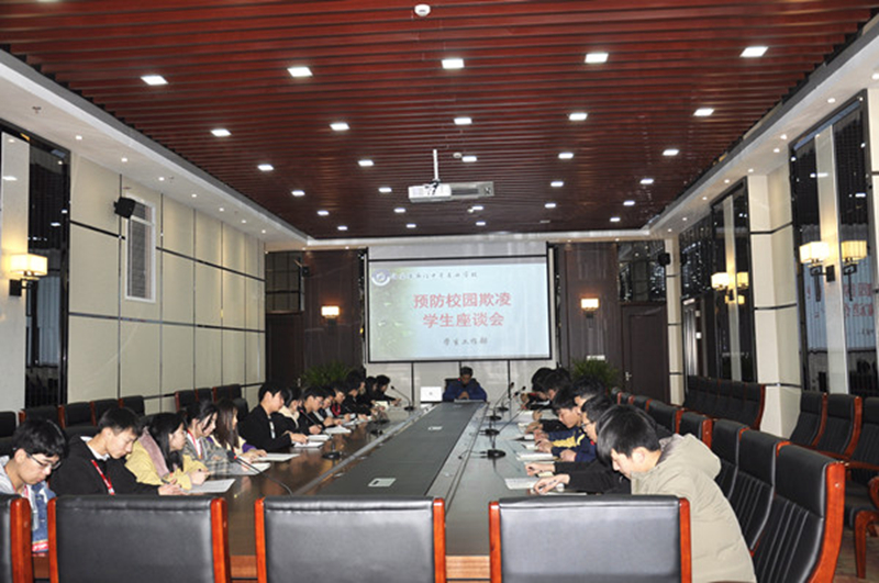 为深入贯彻教育部等九部门《关于防治中小学生欺凌和暴力的指导意见》,切实防治校园欺凌事件发生,净化校园风气,3月21日中午12:20安保处在A楼第一会议室举行预防校园欺凌学生座谈会,校学生总会和学生分会代表近40名学生干部参加会议,会议由安保处顾亦舟主持。 会上顾亦舟首先诠释了校园欺凌的含义以及通常的表现方式,接着列举了启东二中专和海南初中发生的校园欺凌事件,让全体学生会代表深刻了解了校园欺凌的危害。针对校园欺凌的恶劣影响,顾亦舟老师详细介绍了我校开展预防校园欺凌的实施方案、具体的活动内容。 会议第二项议程:校园欺凌问题的调查问卷。安保处根据我校的实际情况,采用问卷调查的方式进一步了解我们学生对校园欺凌预防的认知度、参与度和防范情况,参会的学生代表们均如实进行了答卷。 会议最后一项议程是座谈交流,各位学生会代表根据座谈会的提纲踊跃发言,交流了发生在我们校园内或校园外的、所见的或所闻的、本系部或其他系部的一些校园欺凌现象或事件。具体表现有:学生因面貌不太好看、个子矮或成绩差遭他人嘲笑、起绰号的现象;学生通过微信或QQ进行集体侮辱或辱骂;学生因迟到、胸卡等被学生会扣分后对学生会人员进行威吓的行为;系部之间因矛盾在教室或宿舍进行扇耳光、施暴的情况;因琐事召集多名学生围堵一学生,并进行恐吓、威胁的现象;让同学买东西,但未及时付钱等。 当前,校园贷、校园欺凌等事件时有发生,引起社会广泛关注,一度成为社会热点话题。学校安保处通过此次座谈会的开展,让学生从根本上认识了校园欺凌,懂得了如何保护自己,为学校营造了良好的法治教育氛围,从而杜绝校园欺凌的发生。(陆锦俊)