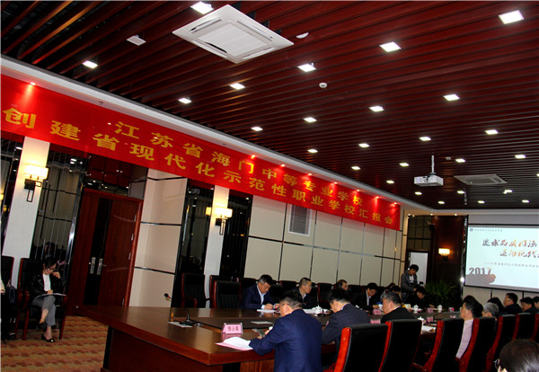 4月23日上午8:30,我校于图文信息大楼阿里厅召开了创建省现代化示范性职业学校现场考察汇报会。 南京信息职业技术学院党委副书记、纪委书记施泽波为组长的省现场考察专家组一行,海门市人民政府副市长黄静,海门市委教育工委书记、海门市教育局党组书记、局长许新海,南通市教育局高等教育与职业教育处副处长李维,海门市教育局副局长朱国兴出席了本次汇报会。参加会议的还有校长徐忠、党委书记宋健等学校全体党政领导班子成员,中层干部代表,教师代表及学生代表。 根据省教育评估院的相关要求,现场考察汇报会分上下两节。 会议上节由学校党委书记宋健主持。宋健介绍了到会的专家组六位成员、学校上级主管部门领导及学校班子成员。海门市人民政府副市长黄静致欢迎辞。她首先对省专家组的到来表示热烈欢迎,对领导专家们给予海门职业教育的支持表示诚挚谢意。黄静指出,海门的产业发展支撑着职业教育的发展,产教融合,以产促教,由此海门中专也就具备了“得天独厚的发展条件”。今天,江苏省现代化示范性职业学校的创建、省专家领导的指导,也必将激发出“新的灵感”,提供“新的契机”、带来海门职业教育“新的春天”、“新的发展机遇”。 会议下节由专家组组长施泽波主持。施泽波强调,专家组将以“教育厅使者”、“评估专家”、“参评学校良师益友”的身份,考察学校在“达成度”、“努力度”、“满意度”三个“度”上所下的功夫,“严”字当头、规范程序,以帮助学校发现问题、解决问题,更快,更好的发展。 会上,校长徐忠作了题为《追求品质内涵 迈向现代示范》的工作汇报,围绕着学校创建工作基本情况、项目实施情况、发展规划三个方面全面翔实地汇报了学校的创建工作。副校长茅一娟作了以《品牌领航 文化浸润 创最美中职校》为题的汇报,围绕着特色亮点、行动成效、问题思考三个方面对我校的德育工作作了专项汇报。 提问环节,专家们主要就“学校的教诊改工作如何有效推进?”、“二级管理质量保障体系怎么循环?如何保障?”、“学校有哪些有效做法来保障班主任的工作热情?”、“专业建设规划与建设有哪些具体实施内容?”、“大生教育产生于什么样的背景下?与学校核心文化是如何结合的?推动的途径措施有哪些?”等一系列问题展开了讨论。 会后,专家组成员在徐忠校长等陪同下,观看了学校专题片,察看了服装、幼师、数控、建筑、烹饪、汽修等实训基地的教学环境与设施设备。 据悉,本次现场考察历时3天。评估期间,专家组们将通过资料查询、专业剖析、推门听课、问卷调查、座谈访问、参观实训基地等方式全方位评估我校在创建省现代化示范性职业学校上的建设成果。(文/顾佩佩 图/黄蓉蓉)