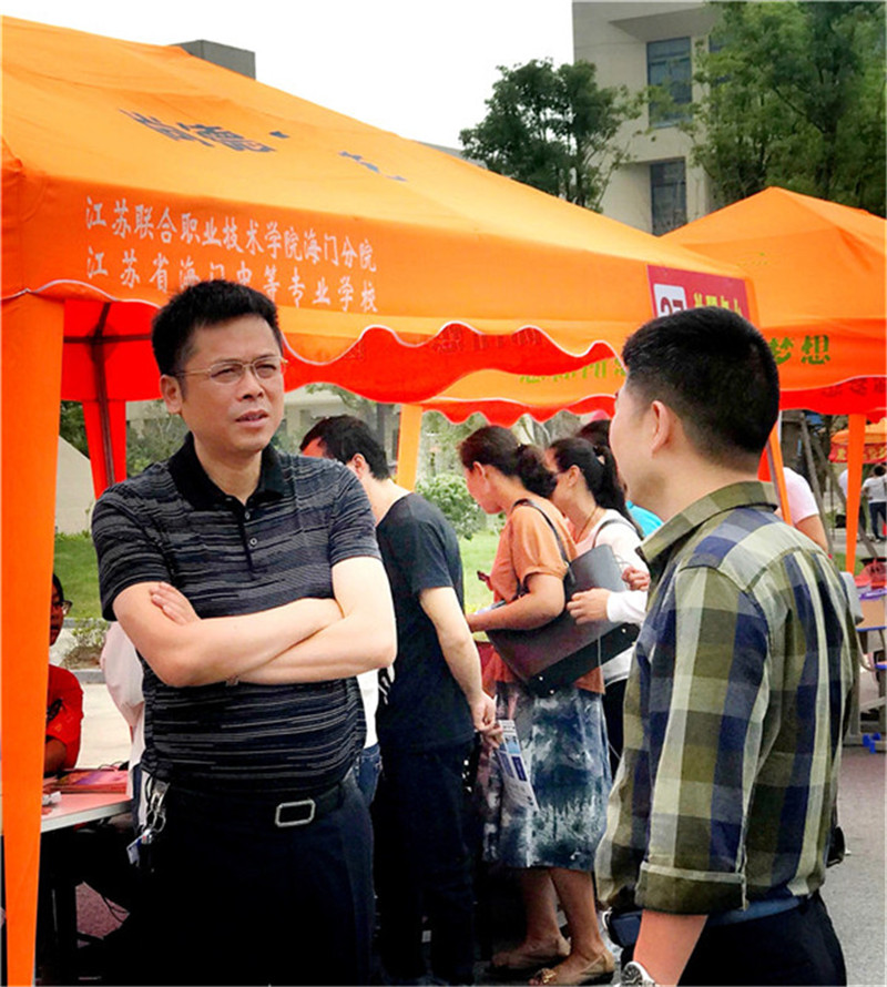 今天海门中专校园彩旗飘展,热闹非凡,各个电子屏上宣传标语格外醒目“合适的教育,人人皆可成才”“感觉职教文化,领略海专魅力,共踏梦想征程”“相约海门中专,成就大美人生”;謇公大道旁一排溜摆放着宣传展板、海报等;中央大道两排展位南北铺开,以初中校为单位设立招生咨询点;学校招生就业处专门设立总服务台,围绕学校整体情况、招生政策、专业介绍等方面为考生与家长们提供详尽的咨询。