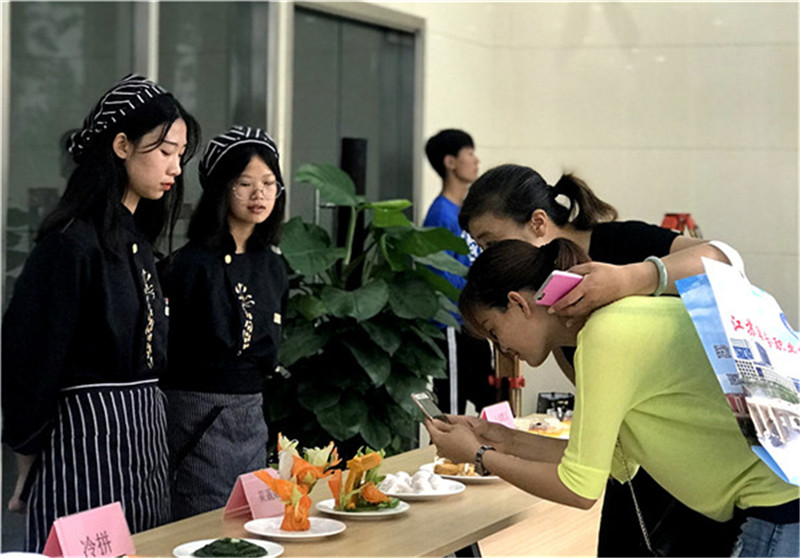 本次开放日,学校用心准备了五项体验活动。一是观摩各系部技能成果展示。各系部充分利用这一宣传机会,系部展板图文并茂展示特色文化,各专业纷纷亮出绝活,开启“秀场”模式:令人垂涎的烹饪作品、神奇巧妙的3D打印、悦耳动听的电钢表演、手指如飞的点钞展示、造型别致的立体裁剪、高端大气的影视拍摄与动画制作、情趣高雅的艺术插花等等引来人们驻足观看,各种技能及作品展示,让人更直观地感受和体验了职业教育的风采。二是参观实训区,今天的海门中专精艺园、精工园、工匠园、蓝领园大门敞开怀抱欢迎大家的到来,部分项目在教师指导下开展课程体验。三是体验教学环境观看专题片。大家在海门中专设施设备优良的教室入座,休息之余观看学校恢弘大气的专题片,让来访者对我校有了更加立体深入的认识。四是观看社团展演。在学校南操场,各社团整点展示,街舞表演动感十足,鼓韵展演精力充沛,礼仪展示更让人耳目一新……出色表演赢得了家长们的好评,三场表演赢得学生家长掌声不断。五是自主参观。无论是餐饮区、宿舍区还是生活服务区,其优越的条件非其他学校可比,家长纷纷拿出手机拍摄留念。