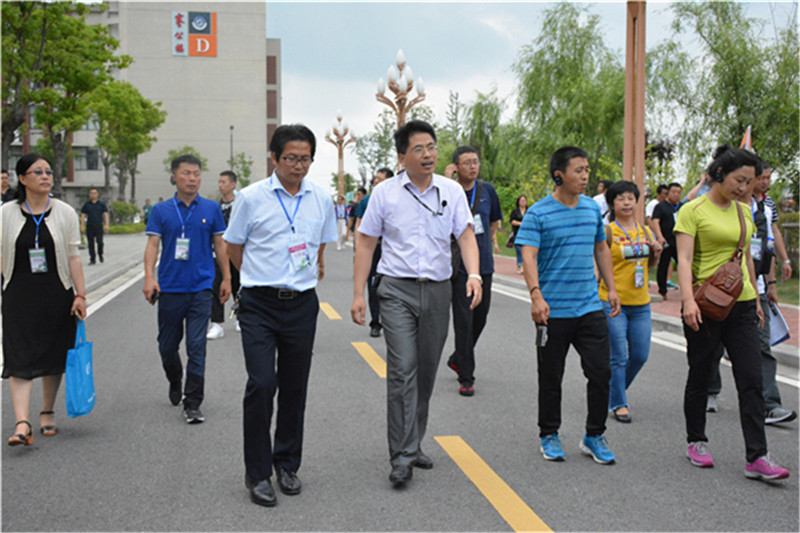在从行健路前往校南操场的途中,周校长向来宾们简单介绍了我校的校园文化、办学特色以及我校开展校园足球活动的相关情况等。来宾们对我校优美的校园风景、过硬的足球场地及体育设施设备啧啧称赞,为学校校园足球活动的开展创设的上好条件羡慕不已。