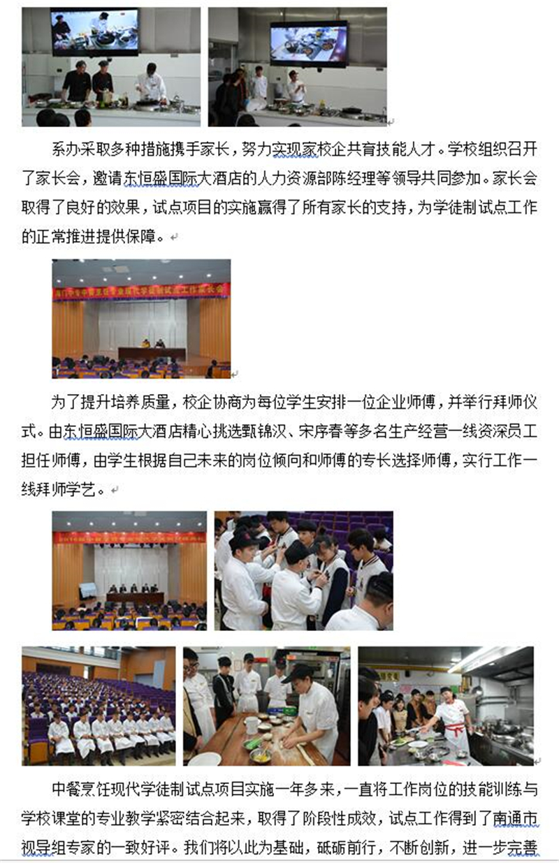 中餐烹饪专业现代学徒制试点项目实施情况简介