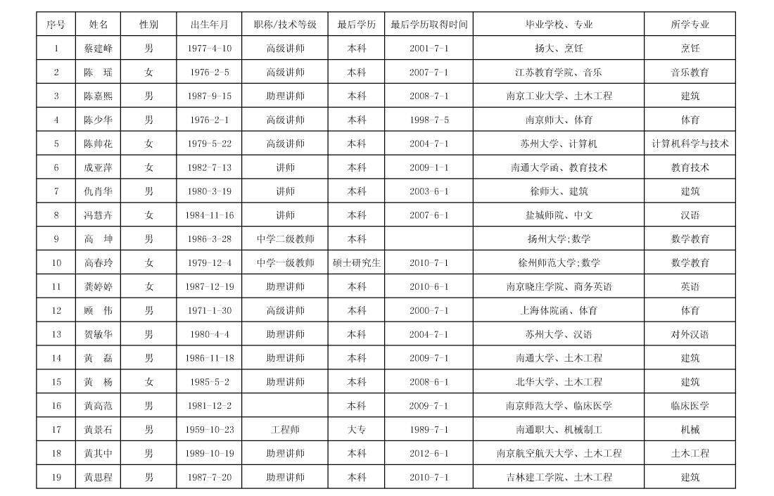 建筑工程系师资情况一览表