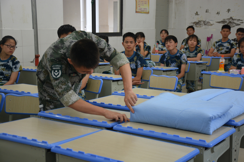 良好的学习从学会生活开始,为了让学生更好更快地融入海门中专这个大家庭,海门人武部派遣的教官们手把手地教会学生如何在集体生活中处理好自己的内务卫生。