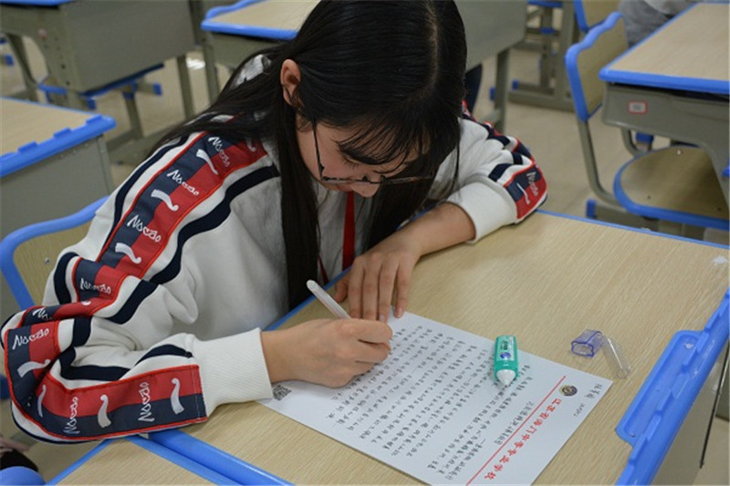 考场里寂静无声,只听见笔尖在纸上“沙沙”地走着,就像是轻轻地、小声地说着体己话。日光灯下,同学们聚精会神地描写着自己眼中经贸最美的样子。同学们神采飞扬,妙笔生花下书写最美的经贸,一笔一划是对经贸的赞美,一撇一捺是对经贸的尊敬。每个年级的同学都有对经贸不同的看法和赞美。是憧憬,是遐想,是回忆……