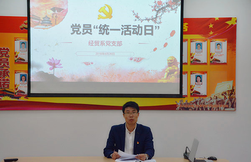 4月27日上午9:30分,经济与贸易系党支部在书苑C2楼209党员活动室开展了4月份“党员统一活动日”活动,活动由支部书记陈忠平同志主持,支部全体党员参加了本次活动。
