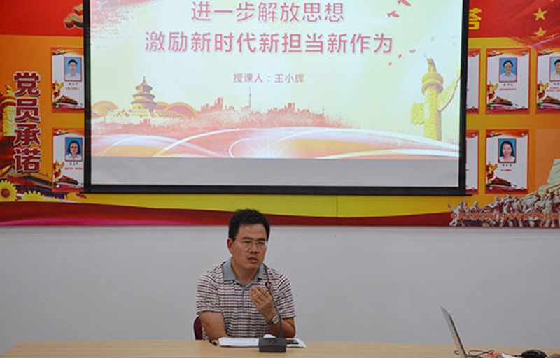 第三项议程,王小辉同志上“进一步解放思想,激励新时代新担当新作为”专题党课。王校长就学校的发展历史、现阶段发展情况及面临的一些机遇和危机,做了深入的解说,要求党员同志们将解放思想大讨论活动激发出的活力,转化为推进学校发展的强大动力。