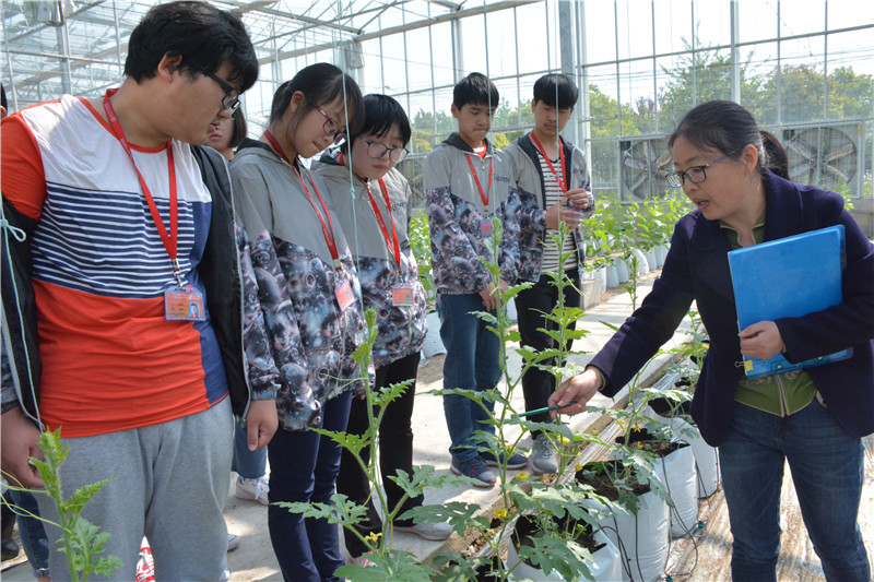 包所长首先带领大家参观了海门市甜瓜育种、新品种推广科研基地,她把近二十多年来从海蜜1号到海蜜10号海门甜瓜培育的历程给同学们一一作了介绍,经过多年的培育,甜瓜的品种、品质、产量和抗性都在逐步增强,为周边及海门当地瓜农的经济创收做出了巨大贡献。从同学们求知的眼神里我们读出渴望;从同学们争先恐后的提问中,我们看到了希望。