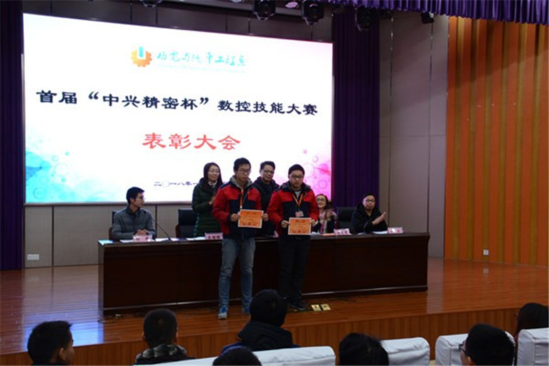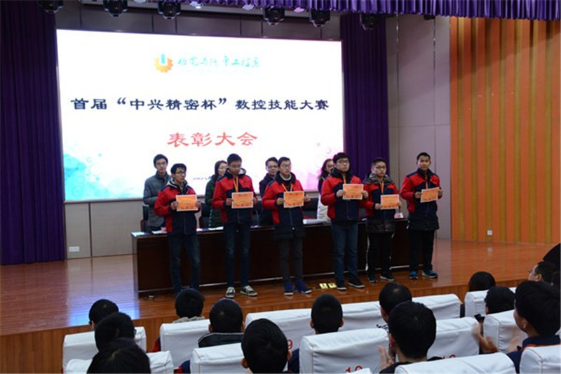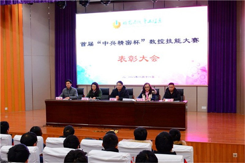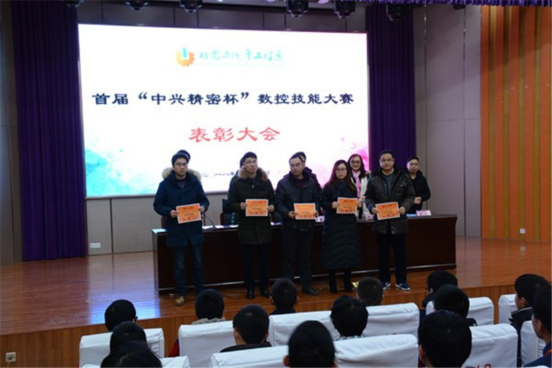 1月11日下午1:20分,机电与汽车工程系于文苑报告厅召开首届“中兴精密杯”数控技能竞赛表彰大会,中兴精密副总游正村、管理部经理林美惠、机电系主任吴樱樱、副主任黄引出席,表彰大会由杨柳副主任主持。 第一个议程,黄引副主任宣读获奖名单并举行颁奖,数车、数铣两组共角逐产生一等奖2名、二等奖6名、三等奖10名及优秀指导教师5名,并颁发了奖状和奖品。 第二个议程,江苏中兴精密机械有限公司游正村副总讲话,游总对获奖老师和同学表示祝贺,他表示,中心精密和机电系良好的合作关系非常宝贵,愿意与我系长期保持并深入开展校企合作关系。同时,他对同学们提出了几点希望,希望同学们在学习中树立主动意识,养成勤思考、多提问、能动手的好习惯,培养一技之长,为走上社会打好基础。 第三个议程,机电系吴樱樱主任讲话。吴主任指出,系部联手各知名企业举办各类技能比赛的目的是为了在全系营造以赛促教、以赛促学、以赛促改、赛育互动的良好氛围,希望全体师生能了解举办大赛的良苦用意,找准方向,明确目标,找出差距,奋勇前行,同时号召全体学生要向获奖的同学学习“勤学苦练、自强不息、敢于争先”的精神,争取在下一轮的技能兴趣小组选拔中脱颖而出,赢得在省市乃至国家级技能大赛的舞台上展示自己、为校争光的机会。最后对中兴精密公司的对本次大赛的技术支持、对学生的培养表示由衷地感谢。 通过本次表彰大会的成功召开,与会师生进一步认识到加强实践教学,提高专业技能对人才培养的重要意义,为广大学生提供了很好的榜样示范作用。系部将进一步做好专业技能教学工作,确保实践教学质量再上新台阶。(文:金鑫 图:蔡文宇)