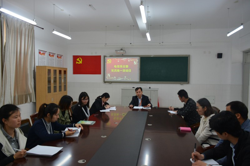 4月27日上午9点10分,根据电信系党支部工作计划,同时结合学校党委的相关要求,电信系党支部在E楼118党员活动中心举行了4月党员“统一活动日”活动。活动由支部书记俞剑雄主持,电信系全体党员参加了活动。