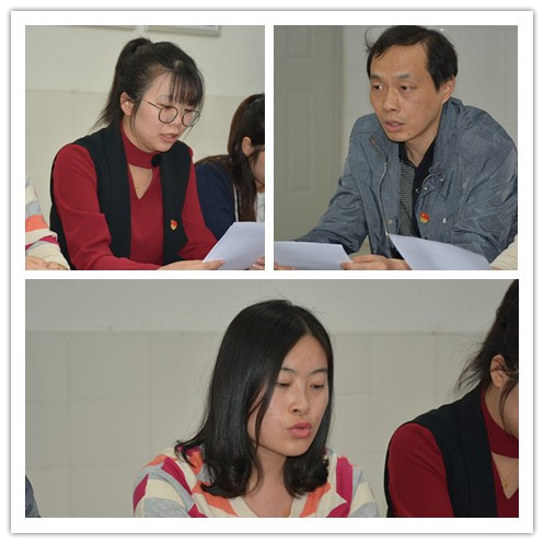 第一个议程,俞剑雄书记组织党员进行“学习十九大”交流。丁世豪老师从自身的教学经历谈起,和在座的党员教师一起领悟了“用生命影响生命”的深刻内涵;王娟老师从“执教、爱岗、自觉”三个方面讲述了对“师德”的理解;崔丹丹老师则以“爱与责任”为话题,解读了“奉献、勤心、经营”三个关键词。