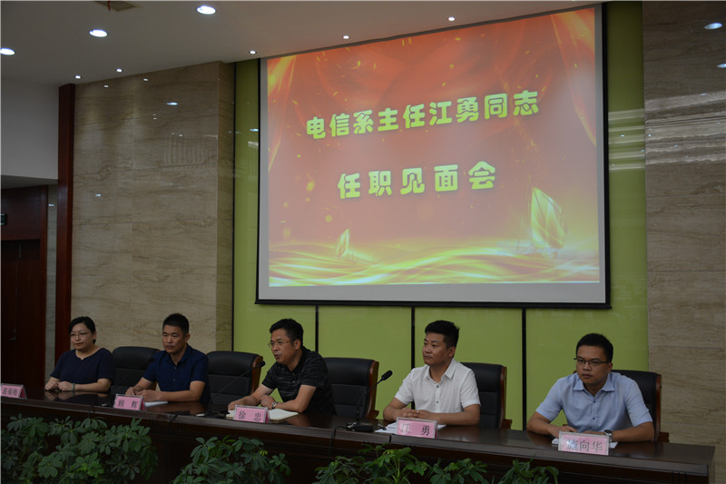 8月27日上午,电信系主任江勇同志任职见面会在精匠报告厅举行,海门中专校长徐忠出席并主持会议,全体电信系教师参加了会议。