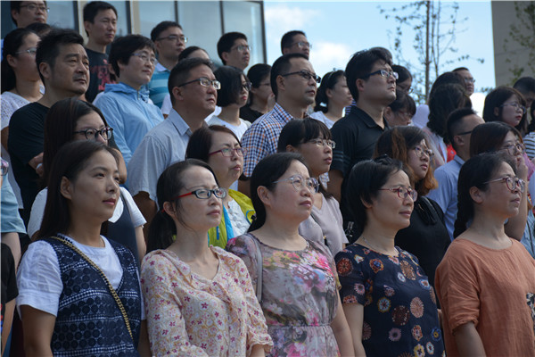 首先,党委书记宋健在国旗下发表讲话,强调凝聚力,集聚新力量,动员全体教职工同心同德、奋发进取,全力开创学校优质发展新局面。