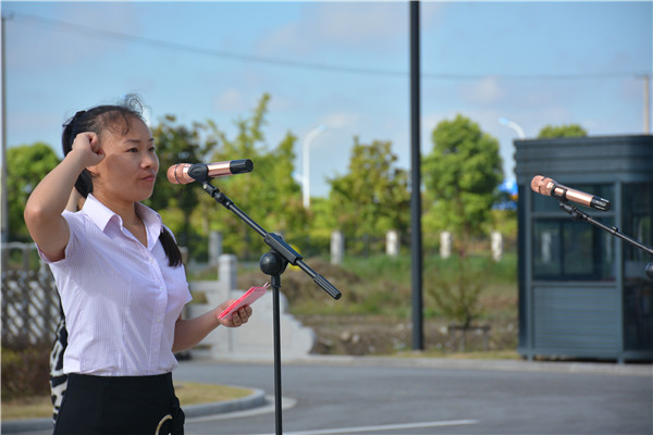 最后,在徐金花老师的领誓之下,全体教职工庄严宣誓,将升旗仪式推向新的高潮。 第二阶段:盘点成绩、部署工作