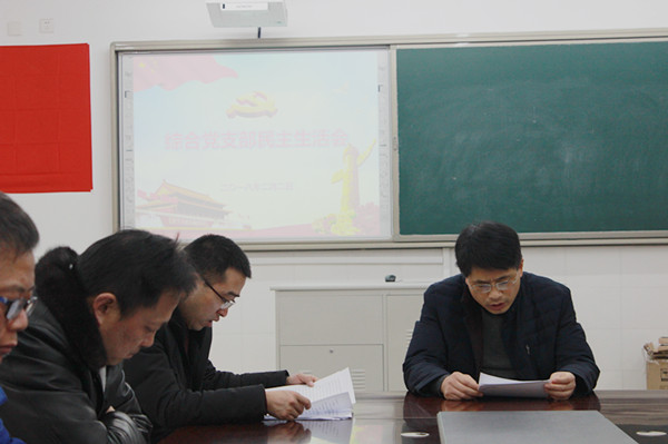 2月2日上午9:20,综合党支部民主生活会如期在E楼118室召开。学校党委副书记,副校长周桂岐同志及综合支部全体党员参加了会议,会议由支部书记袁兵主持。会前,支部委员召开了组织生活会,积极开展批评与自我批评,同时支委会对后阶段的综合支部党建工作的顺利开展进行了详细的商讨。 本次会议共有三项议程。首先,周校长组织全体党员学习了习近平总书记新时代中国特色社会主义思想和党章讲话精神。带领大家进一步理清“八个明确”和“十四个坚持”之间相辅相成的关系,进而从理论和实践层面上回答我们要坚持和发展的是什么样的社会主义。同时,学习了新时期我们党员的义务及基层党组织的基本任务。他期望全体党员要时刻以优秀党员的标准严格要求自己,要进一步解放思想,务实创新,团结群众做好本职工作。 其次,由支部书记袁兵同志作党员冬训总动员并做冬训第一阶段学习。袁书记认真解读我校党员冬训工作方案,对照方案,我们要把握时间节点,不能流于形式,要真正的贯彻落实,强化组织领导、提高工作实效、重视督查考核。 最后,按照会议流程,支部进行民主测评,对照党员管理积分,本着公开、公平、公正的原则,各党员以不记名方式认真填写《党员民主评议测评表》,评选出心目中的五星级党员。(韦彩红)