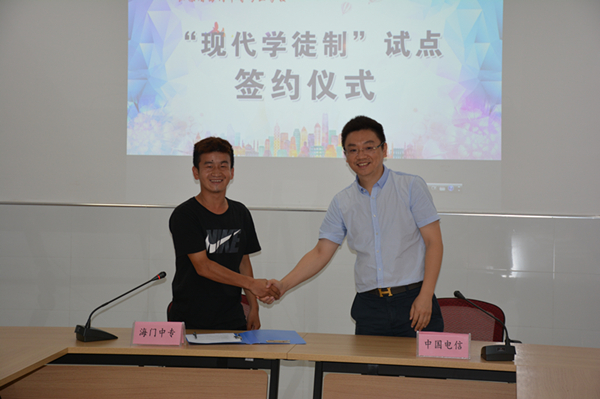 9月1日上午10点在C1-232会议室召开14级计算机管理班 “现代学徒制”试点校企合作跟岗实习签约仪式。会议由系部主任徐亮主持,中国电信负责人金勇、张莉,信息系副主任陈建华、实习班班主任瞿骏、跟岗实习学生及其家长参加了此次会议。
