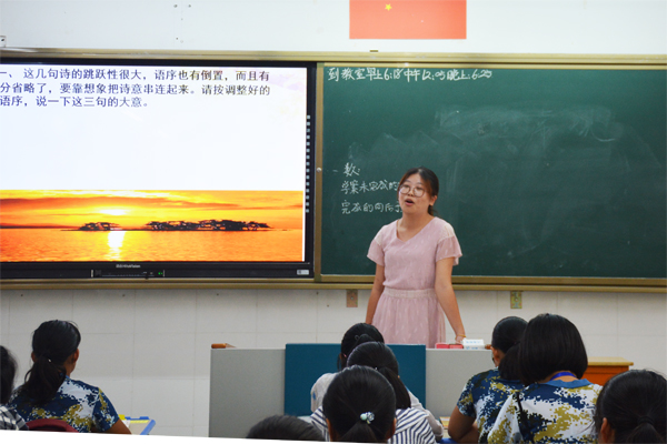 张老师的语文课《沁园春·长沙》,从回顾上节课内容开始,带领学生从语言、情感、意境、手法等方面深入赏析了这首词的上阕内容。两位老师备课充分,课堂实施环节完整、紧凑,充分运用了信息化手段,师生互动多,教学效果良好。课后,主任室成员和相关教研组长与两位老师均进行了深入交流。