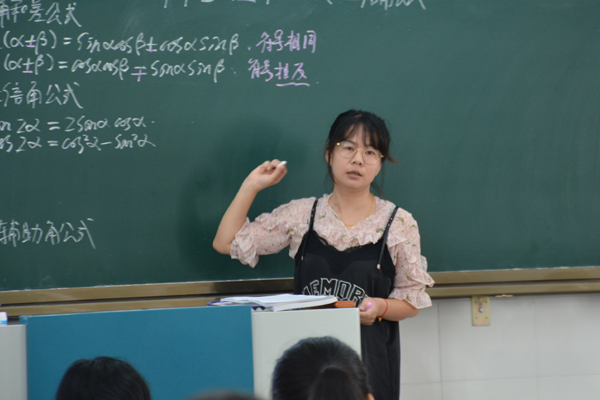 上午第二节,在周桂岐副校长、王飞主任的陪同下,市教育局朱国兴副局长走入财贸系16YZ06班,听取了蔡娟娟老师的一节高三数学复习课——《两角和、差的正余弦公式与二倍角公式》。蔡老师和学生一起回顾公式,提出理解性记忆内容和易错点,接着通过三个典型例题和相应变式,与学生一起探讨解题方法和细节注意点,并对公式进行了灵活运用训练。整节课重点突出,学生积极参与、思维活跃,老师引导合适、点到为止,留给学生广阔的思维空间,取得很好教学效果,得到领导的一致好评。