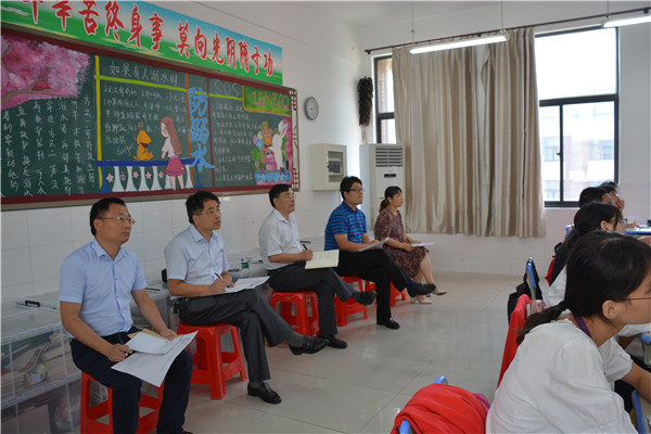 朱国兴一行分头深入课堂,调研了5位老师的上课情况。