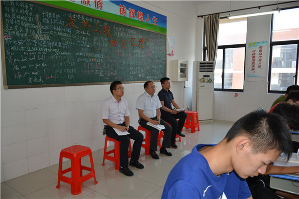 9月4日,新学期开学第2天,海门市教育局副局长朱国兴率领职社科领导朱士华、曹杰、陈小军、唐庆军,对我校开学工作进行调研。