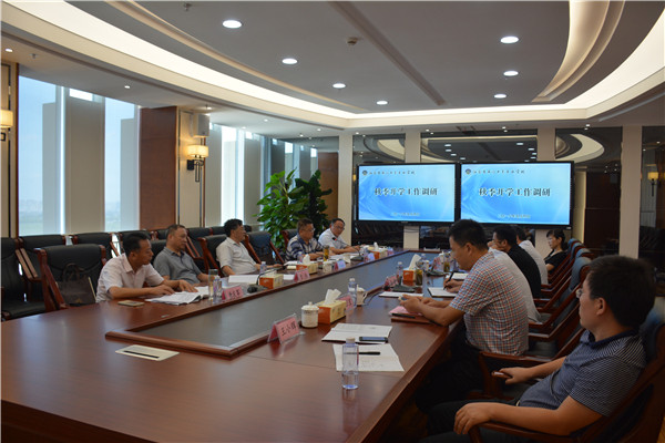 随后,朱国兴一行来到图文信息大楼谷歌厅,听取党委书记宋健代表校长室所做的开学工作专项汇报。宋健从开学工作准备、招生计划完成、新老学生报到、社区教育重点工作部署、对口单招各年级教学安排,以及产教融合校企合作等六个方面,简要介绍了学校为新学期出新、出彩起步开局而所做的各项努力和精心准备。