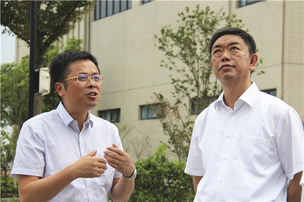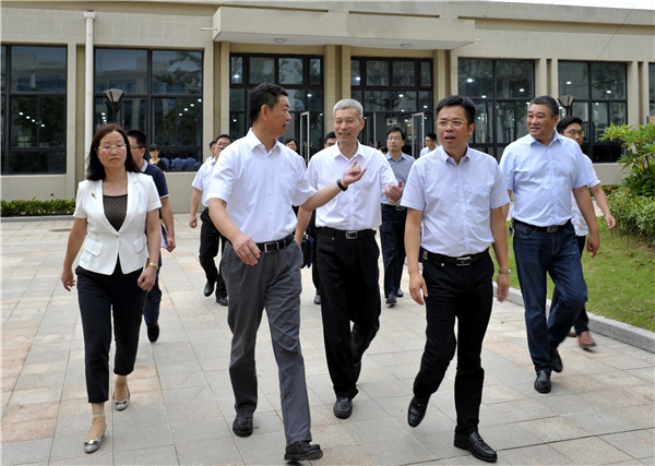 首先,陈勇一行视察了学校校园和实训装备情况,先后来到建筑模型馆、机加工、汽修、数控等实训场所,看到学校一应俱全的现代化教学装备,整洁宽敞的企业化实训环境,陈勇对海门中专的发展给予了充分肯定,称赞学校校园大气,空间开阔,教学装备十分先进。