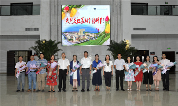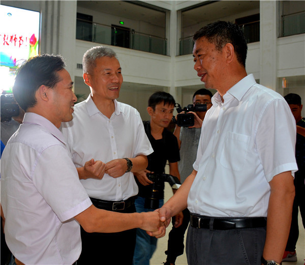 随后,陈勇一行来到图文信息大楼二楼大厅,在许新海的介绍下,跟来自全市教育系统的优秀教师代表一一见面握手,并送上鲜花,向他们表示节日的祝贺和亲切的慰问。