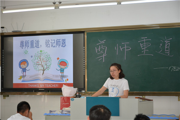 “铭记师恩,尊师重教”的主题班会,营造了尊师重教的浓厚氛围,也让学生更加深刻认识到尊师不是一句口号,而应根植于我们每一个同学的心底里,自然流淌于我们的血液中。(文:赵佳 图:黄健)