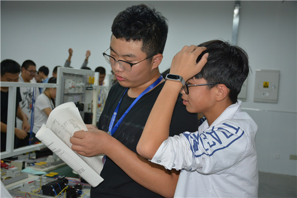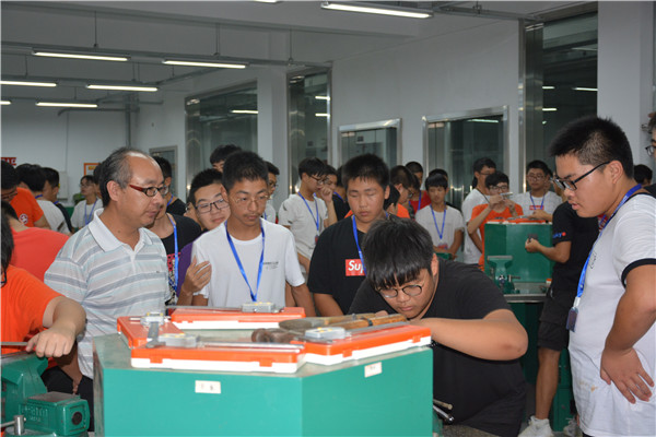 9月6日晚上,18EZ03机电专业学生参观了钳工实训室。同学们一进去就被高三实训学生的专注与汗水深深折服,高三学长们实践奋斗的身影就是他们日后努力的标杆。同时,大家对钳工实训设备也很感兴趣,个个跃跃欲试。黄峰老师对技能高考的讲解,又让同学们对自己学习的专业有了进一步了解,目标更明确。