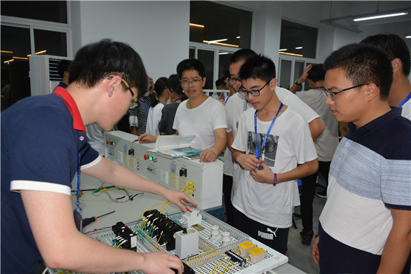9月6日晚上,18EZ06电子电工专业学生参观电子实验室,张成老师为同学们讲解了该专业的技能训练要求。张老师说对于电子专业的学生而言,电子专业技能训练课是主要课程之一,也是基础课程之一,学习好这门课程,对学生的专业技能水平有直接的影响。