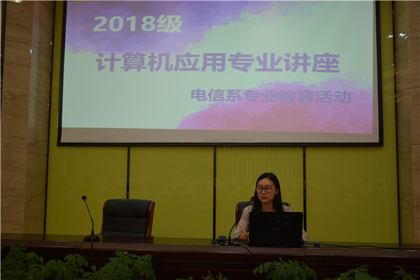 9月 7日中午,18级两个计算机专业学生在大师报告厅听取了我系优秀毕业生朱川慧学姐的报告。朱川慧学姐首先为同学们讲述了她丰富多彩的大学生活,这让同学们无比向往。随后,她回忆了高考和考研这两个最艰难也最难忘的时期,她用自己的优异成绩告诉同学们只要坚持,什么都可以变成可能。最后,她一一为同学们答疑解惑,鼓励大家以积极的心态、高效的学习方法扫除学习上的障碍,成就自己的一番理想。