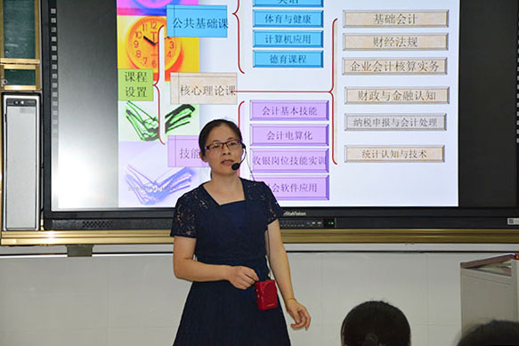 何小华老师从“为啥学”、“学什么”、“怎么学”为会计电算化专业的学生分析了本专业在社会上的地位和发展前景、培养目标、专业的课程设置、职业岗位等,让学生清晰的认识到自己将要学习的知识和努力的方向。
