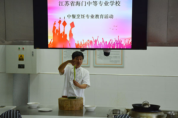 周晟老师以“上得厅堂,下得厨房,做复合型的烹饪技能人才”为题切入,为新生们介绍了烹饪营养系的办学历史、实训场地、参加技能大赛的情况、实习单位、优秀毕业生及升学的相关情况,采用现场教学方式为同学们进行了展示。