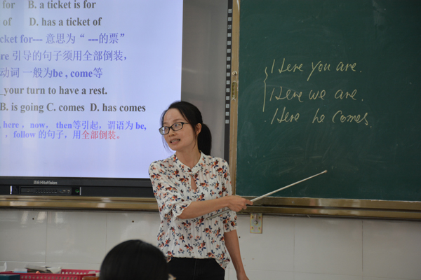 9月11日下午第二节,施兴华老师在16YZ04班开设题为《倒装句》的英语复习课。施老师依据精编的导学案,将整节课设置为环环紧扣的七大部分,将旧知回顾、课堂练习、拓展延伸、总结反思等内容巧妙串联为一个有机整体,师生互动积极热烈,很好地完成了预设的教学目标。