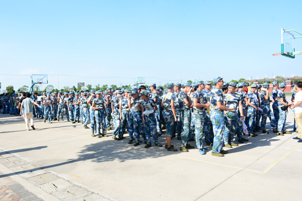 为进一步提高我校2018 级新生的安全防范意识和自救互救能力,增强自我保护能力,掌握应变突发火灾的逃生技能,确保师生生命及财产安全,7月13日下午4:00,2018 级新生军政教导团组织三营、四营、五营全体学员在学校2号、3号、5号宿舍楼进行了宿舍区安全疏散演练。 第一项为宿舍区模拟火警安全疏散演练。