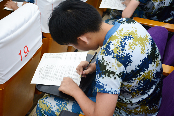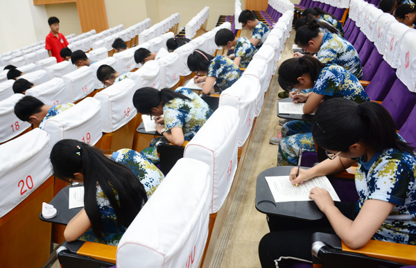 为进一步提高我校2018级新生的综合素养和理论水平,7月14日下午2:00至2:30,军训教导团在B1楼文苑报告厅组织了2018级新生军政训练综合理论知识考试。