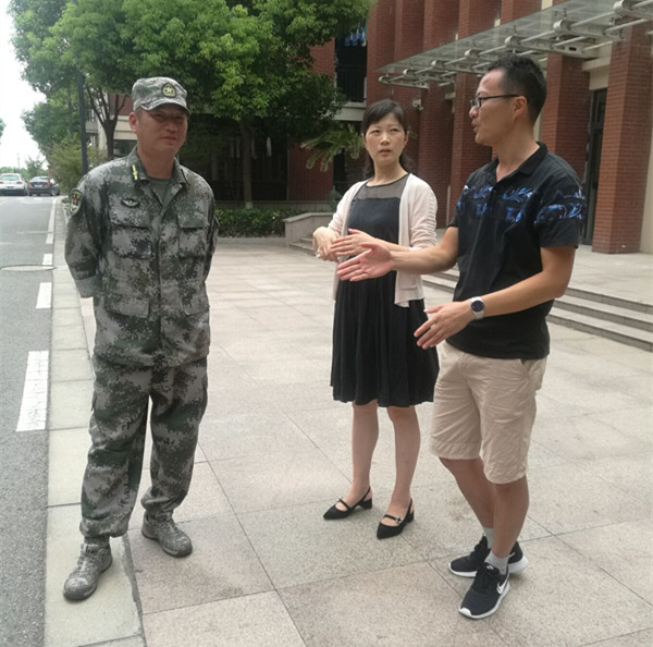 9月12日上午,茅一娟副校长、学生工作部施锡斌主任来到集训方阵,和教官、学生进行面对面交流。茅校长深入学生方阵,和学生交流了此次军训汇报展演的重要意义和具体要求,明确了集训的目标,并用我校历年军训会操的优异成绩鼓励同学们发扬吃苦耐劳、积极创优的精神,牢记“做最好的自己”的校风,力争在本次展演舞台上演绎海门中专人不一样的精彩。在休息间歇茅校长还和教官们进行了深入的交谈,了解了学生集训的具体情况,询问了当前在集训中碰到的困难以及急需解决的问题。