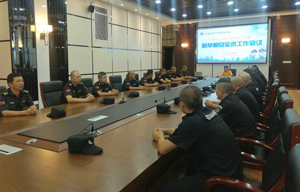 为了进一步加强学校门卫安全管理,落实海门市教育局关于《2018年秋季学校安全工作检查表》的工作要求,全面提升我校全员岗位安全工作的自觉性,9月9日上午7点学生工作部在A楼二楼阿里厅召开新学期全体安全员会议,物业公司全体安全员和国盾保安公司海门中专分队全体保安人员参加了会议,会议由学生工作部施锡斌主任主持。