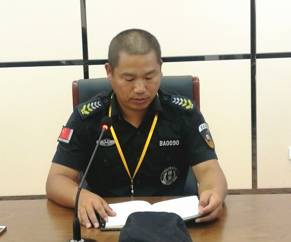 最后国盾保安公司驻点队长陆忠华针对夜巡工作和进出人员管理的情况,要求全体人员牢记学校安全的重要性,服从学校管理,规范工作标准,保质保量完成学校交给的安全保卫任务,维护好海门中专分队优秀团队的荣誉称号。