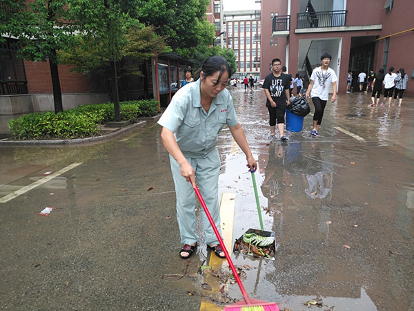 近日,海门受“山竹”影响,出现强降水天气,整个海门市区一片汪洋,我校也深受台风暴雨影响。为尽快恢复学校师生的正常教学生活,使学校环境恢复原貌,后勤人员全力以赴,第一时间做出相关应对措施,全天候执勤,联系相关部门昼夜不息进行排水,全力保障道路通畅,积极进行电力排查及维修,力争把暴雨对学校造成的损失降到最低,为师生的正常教学保驾护航。