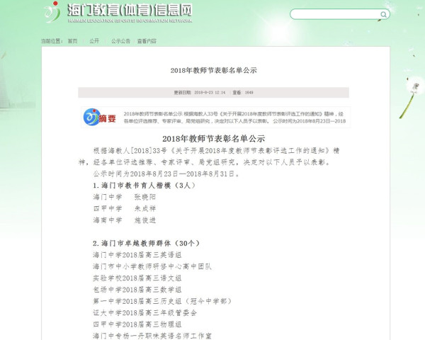 在第34个教师节来临之际,“杨一丹职味英语名师工作室”获评海门市卓越教师群体。从2015年到2018年,今年已经是工作室成立的第四个年头。从成立之初的青涩懵懂到如今的成果丰硕,我们的团队成员们付出了很多的努力。正是因为大家的努力,才有今天的成绩。