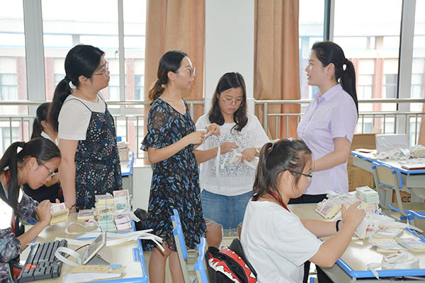 2018年南通市技能大赛在即,为进一步提升参赛选手的技能水平,9月19日下午2:00,经贸系特邀江苏省银行业金融机构点钞识假技术比赛个人全能冠军、江苏省“五一劳动奖章”获得者、中国农业银行海门支行王佳微来校现场传授点钞手法,交流点钞技巧和心得。海门农行综合管理部主任、党支部书记叶敏、经贸系主任施红华全程参与。