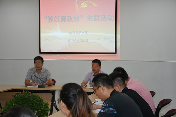 2018年9月20日上午9:15,在C1楼232党员活动室,信息系党支部组织召开了9月份“党员统一活动日”活动,校党委委员周卫星副校长参加会议,会议由信息系支部书记徐亮主持召开。