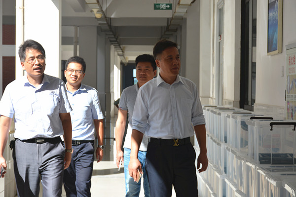 学校对本次检测也极为关心。考试第一场,分管校长周桂岐、教学工作部部长施晓东一行就来到了謇翁楼进行巡查。巡查过程中,他们对电信系学生全神贯注答题的考试氛围、监考老师认真严肃的监考状态、整齐排放的课桌和整理箱布置都极为满意。