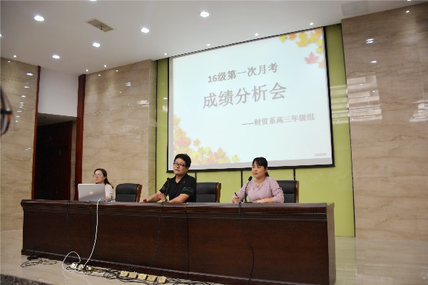9月30日中午12:30,在成绩数据新鲜出炉的第一时间,财贸系召集高三班主任和全体高三学生在謇翁楼精匠报告厅召开了第一次教学质量检测分析会。会议由朱娟副主任主持。
