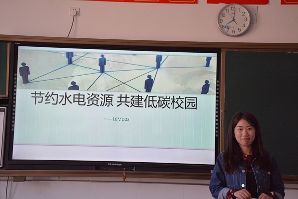 班会课上班主任们分别从节约每一滴水,节约每一度电,共建文明低碳校园展开,要求同学们从我做起,以实际行动在全校积极推广绿色价值观念,提倡节俭、理性的生活方式,养成节约资源、保护校园环境的绿色生活习惯,积极投身到节约水电、低碳校园的建设当中。
